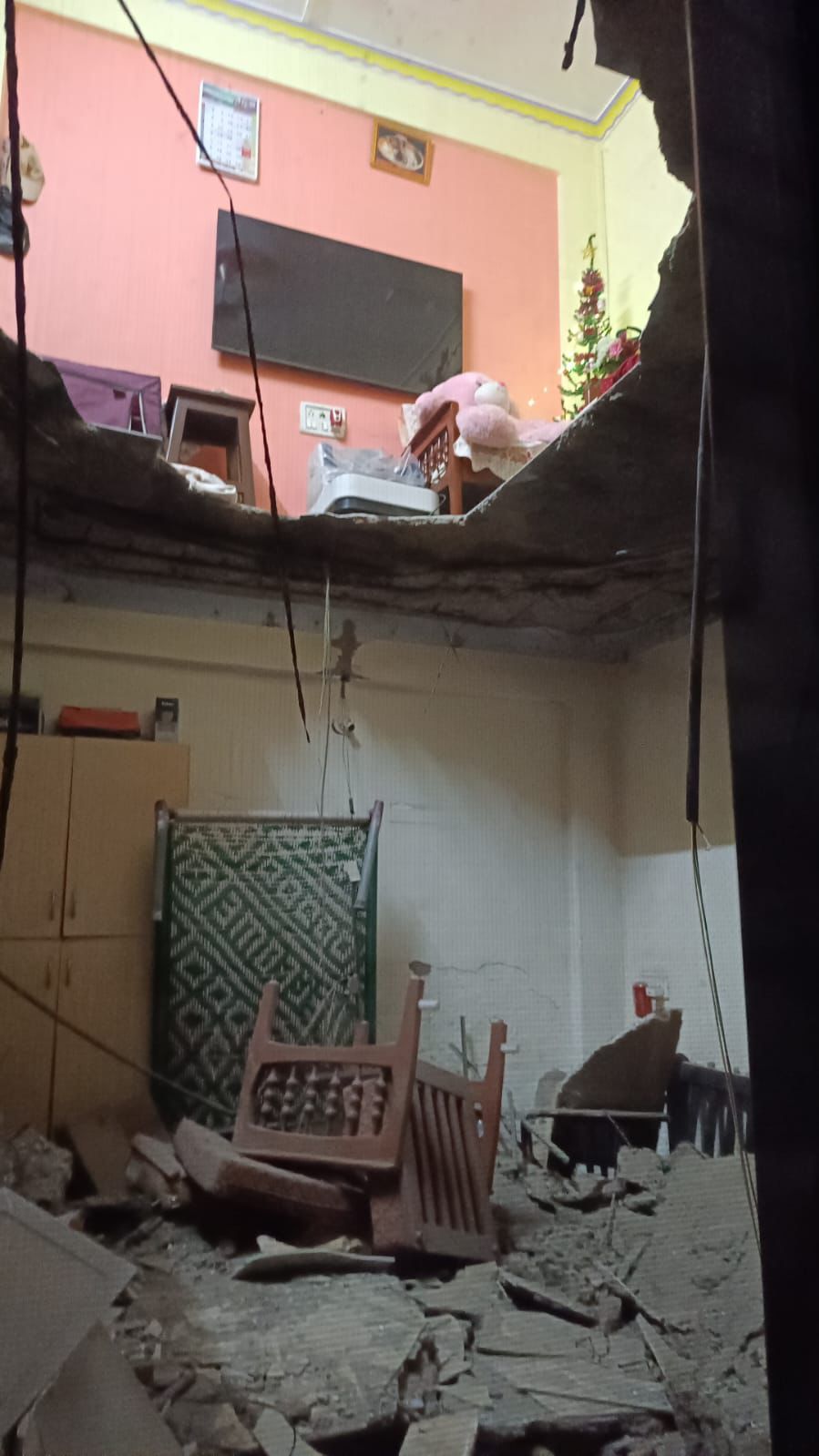 नवी मुंबई।कोपरखैरणे सेक्टर ७ मधील सम्राट नावाच्या २४ वर्ष जुन्या इमारतीत पहिल्या मजल्यावरील फ्लॅटचे छत कोसळल्याची गंभीर घटना घडली आहे. सुदैवाने या घटनेत कोणतीही जीवितहानी झाली नाही. घटनेमुळे परिसरातील रहिवाशांमध्ये भीतीचे वातावरण पसरले आहे.